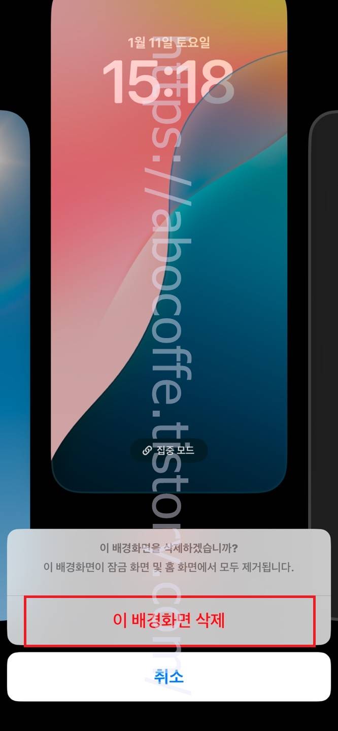 해당 배경화면 항목을 아래에서 위로 가볍게 쓸어올리면 위와 같이 하단에 휴지통 버튼이 보이는데요. 삭제 지우기를 하려면 해당 휴지통 아이콘을 한번 터치합니다. 곧바로 이 배경화면을 삭제하겠습니까? 이 배경화면이 잠금 화면 및 홈 화면에서 모두 제거됩니다. 팝업창이 올라오며 배경화면 지우기를 하려면 이 배경화면 삭제 버튼을 눌러 작업을 마무리하면 되겠습니다. 그럼 여기까지 포스팅을 마치며 아이폰 배경화면 설정 삭제 제거 지우기 없애기 방법에 대하여 간단하게 알아보는 시간이었습니다.